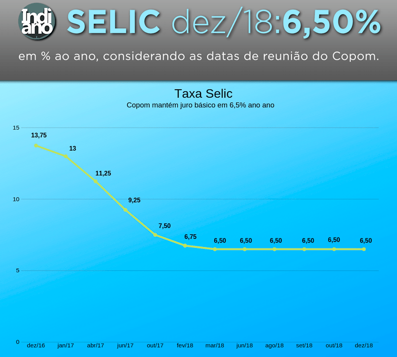 O Banco Central decidiu manter a taxa Selic em 6,5%, na última reunião do Copom. Com isso, a taxa permanece no nível mais baixo da.